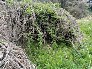 イノシシの棲家では?と思われる場所も電気柵のそばにあります。