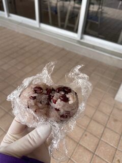 あずきのたくさん入ったお赤飯の美味しいおにぎりをいただきました。