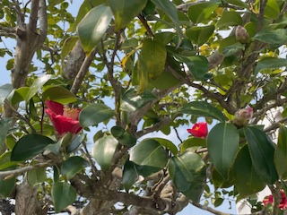街路樹のツバキがきれいな花を咲かせていました。