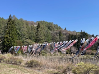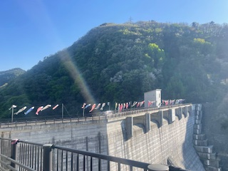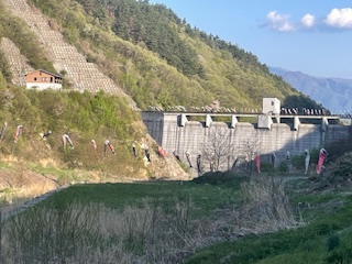 浅川地区では今年も浅川ダムに鯉のぼりを掲揚しています。