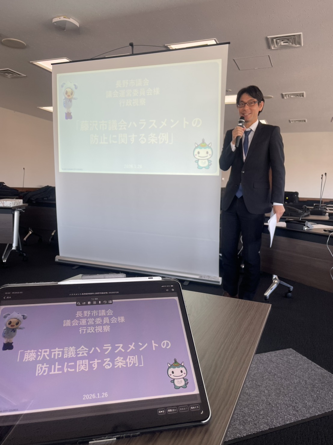 長野市議会におけるハラスメントの防止等に関する要綱を私が議長の時に作りましたが、昨年実際に運用してみたところ使いにくいところが何箇所かありました。また、条例とした方が良いのではという事で先進自治体の議会に視察に伺ったというわけです。